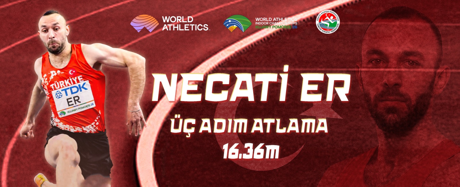 Polonya’da düzenlenen Kujawy Pomorze 2026 Dünya Salon Atletizm Şampiyonası’nda ülkemizi üç adım atlama finalinde temsil eden Necati Er, 16.36m’lik derecesiyle Dünya 13’üncüsü oldu.🏃♂️