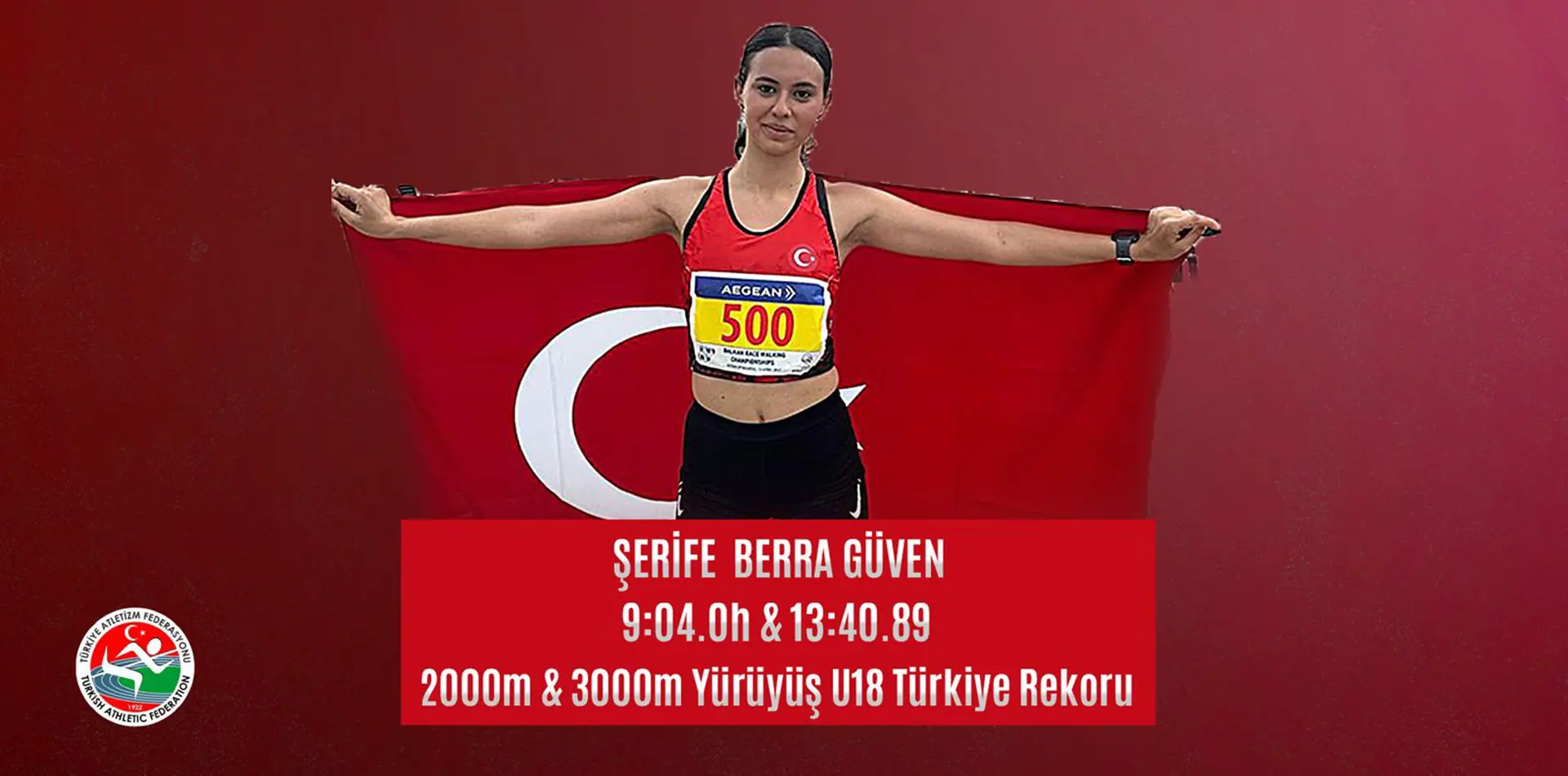 Genç atletimiz, 3000m Yürüyüş yarışında 13:40.89 ile Türkiye Rekoru kırdı. Şerife Berra Güven, 2000m geçişindeki 9:04.0h derecesiyle de Türkiye Rekoru’nu yeniledi.